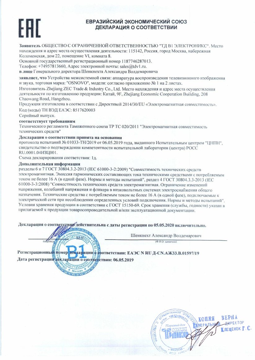 Сертификат Tantos TSi-Ee25FP (2.8)