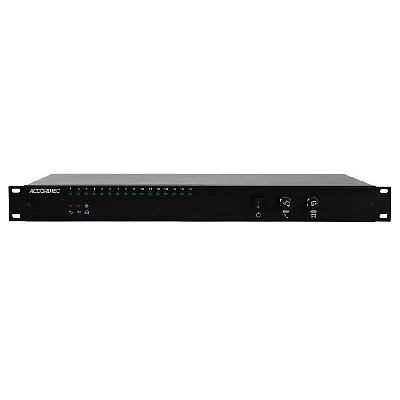 Источник питания стабилизированный для установки в 19" стойку, высота корпуса 1U; U-вх. ̴110…250 В, U-вых. пост. 11,7…14,7 В (регул.), 16 выходов по 1 А; t-раб. -15…+50°C, габ.размеры 465х200х45 мм