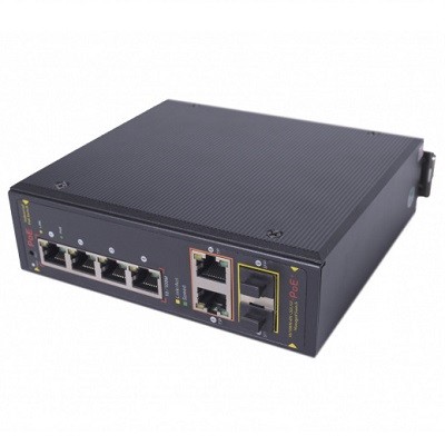 Сетевой комутатор 6 портовый с РоЕ; Сетевой порт 4xPoE 10/100 Base-TX; RJ45 + 2xUplink 10/100/1000 Base-T(X) RJ45; Управление по сети L2; Оптический порт 2xSFP 10/100/1000 (Совмещенные с 2xRJ45); 70 Вт; -40... +75°C; IP40; Металлический кожух, возможность крепления на DIN рейку в комплекте. 145х133х42 мм.