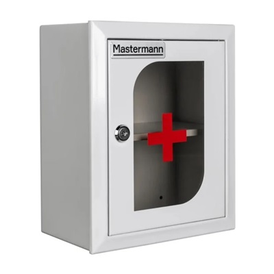 Шкаф представляет собой сварную конструкцию, состоящую из корпуса и дверцы со стеклом в раме. Материал корпуса и дверцы из листовой стали. Материал окошка – пластик. Покрытие порошковой полиэфирной краской, цвет белый. На внешней стороне дверцы изображён красный крест.