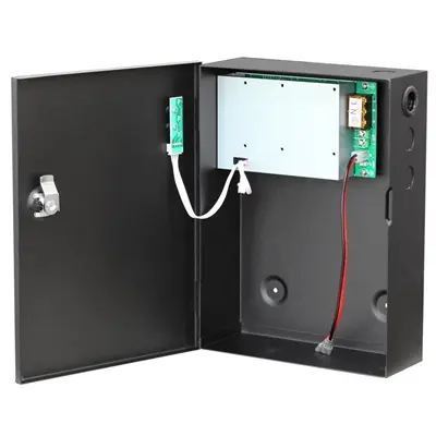 Резервированный источник питания; U-вх.190…240 В, U-вых.13.0…13.5 В, I-ном.10 А, I-max.10.5 А; под АКБ 12 В 17 А·ч (до двух АКБ параллельно); световая индикация режимов работы; защита от короткого замыкания, защита аккумулятора от глубокого разряда и чрезмерного заряда, переполюсовки; кнопка запуска от АКБ; t-раб.-20…+60°C, 285х395х165 мм. Металлический корпус.