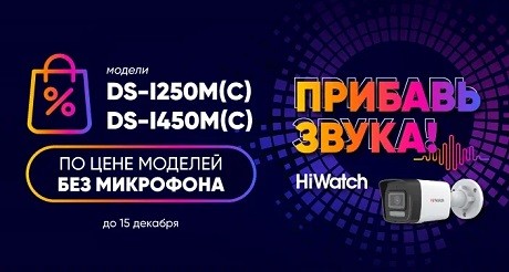 Мы рады сообщить о новой акции Амиком на IP-камеры cо встроенным микрофоном «Прибавь звука». При покупке до 15 декабря IP-камеры HiWatch со встроенным микрофоном DS-Ix50M(C), вы можете приобрести ее по цене аналогичной модели без микрофона DS-Ixx. Т.е. вам предоставляется дополнительная скидка до 27% от РРЦ на каждую позицию и ваша стандартная скидка клиента будет рассчитана от новой РРЦ по акции.