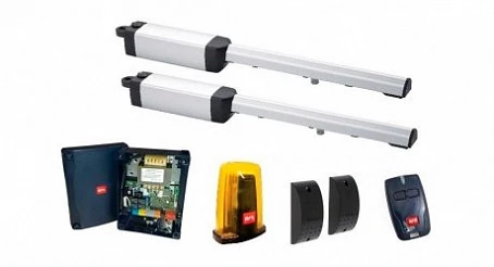 Также компания предлагает готовые комплекты для распашных ворот. В состав комплекта PHOBOS KIT NL BT FRA входят механические приводы, пульты и другие необходимые аксессуары. Комплект IGEA KIT FRA 230V состоит из привода с шарнирным рычагом, фотоэлементов, пультов и др.