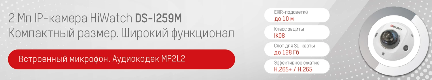 DS-I259M — это компактная IP-камера, разработанная компанией HiWatch для эксплуатации внутри помещения. Модель оснащена микрофоном, и имеет слот для установки карты памяти с вместимостью до 128 Гб.