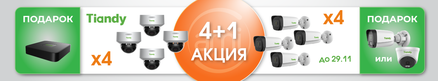 Амиком объявляет акцию на камеры Tiandy – при покупке 4 уличных 2 Мп IP-камер Tiandy с моторизированным объективом – ПОДАРОК!