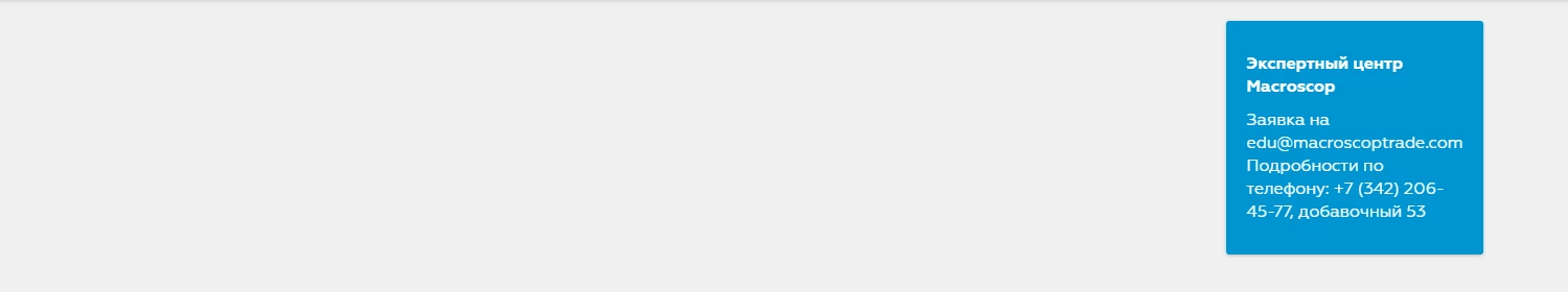 Чтобы принять участие в ближайшем семинаре Экспертного центра Macroscop, необходимо отправить заявку на адрес edu@macroscoptrade.com. Подробности по телефону: +7 (342) 206-45-77 (добавочный 53).