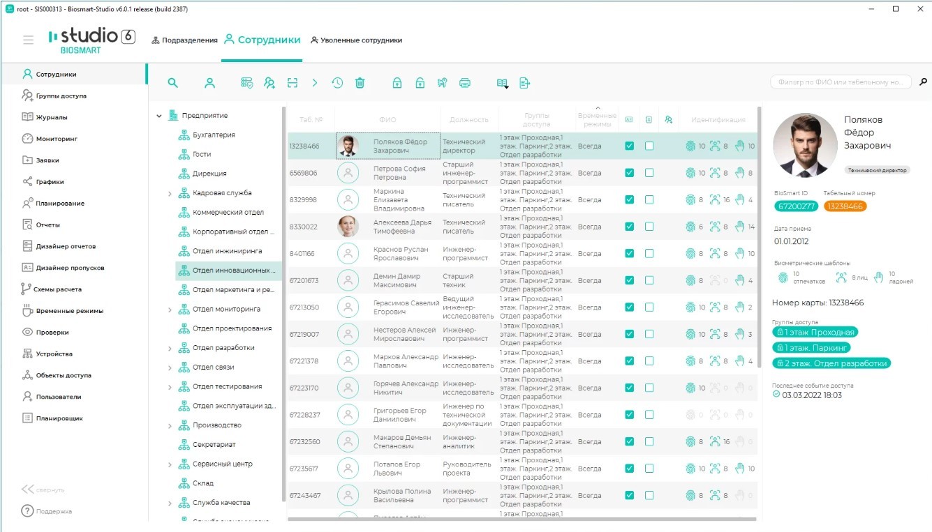 Схема СКУД BioSmart на RFID-картах BioSmart-Studio v6 SMART OFFICE
