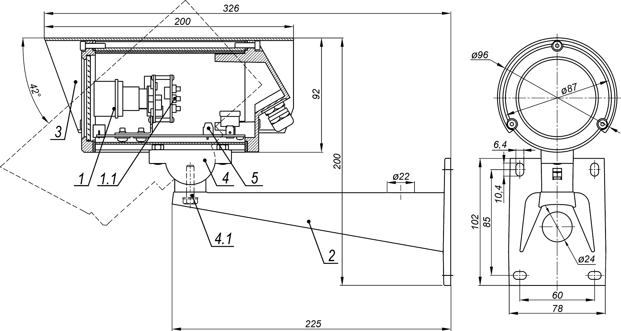 Габариты ТВК-190 IP (Apix Box/E4(II), f=5-50мм)
