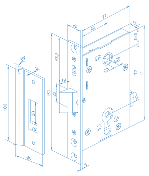 Схема Замок электромех-й врезной 004 (зап.часть для замка Z-Eurolock)