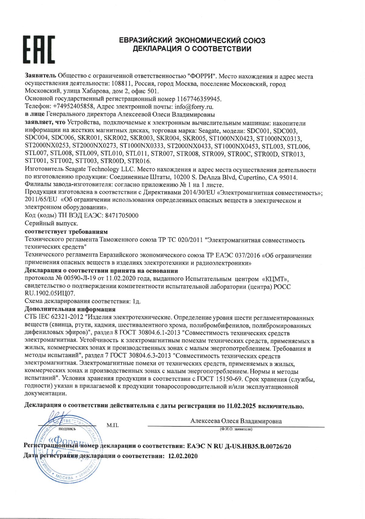 Сертификат Жесткий диск 2.0Tb Seagate Barracuda ST2000DM005