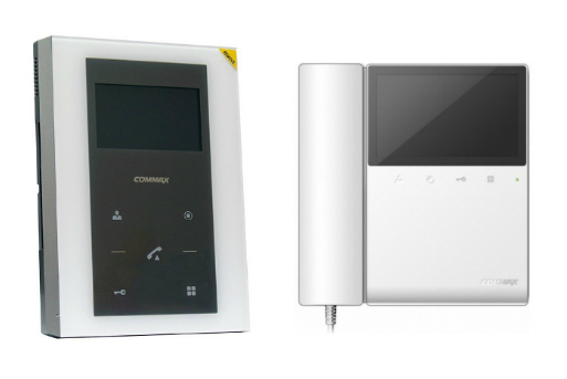 Новинки Commax выполняют функции двусторонней видео и голосовой связи с посетителями для контроля доступа в помещения. Они представляют собой цветные мониторы, оснащённые встроенными динамиками и микрофоном. К ним подключается ответная часть — вызывная панель . LED-подсветка обеспечивает чёткие и насыщенные изображения. Цветные домофоны предоставляют возможность увидеть лицо посетителя, переговорить с ним и открыть электромагнитный/ электромеханический нажатием кнопки (для CDV-43K) или пиктограммы на экране (для CMV-43S). Комфортное общение поддерживается возможностью регулировок яркости, контрастности, насыщенности цвета, громкости сигнала вызова.