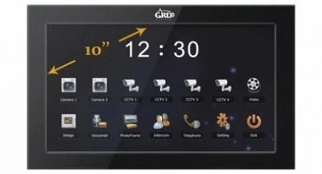 Цветной видеодомофон GRD PRIME оснащается экраном формата 4:3 с диагональю 9.7 дюйма, обладающий естественной цветопередачей. Настройка индивидуальных параметров по выбору пользователя, таких как выбор мелодии, регулировка громкости и пр., осуществляется с помощью сенсорных клавиш. При отсутствии освещения предусмотрена подсветка монитора. Новинка может функционировать в системе, состоящей из 2 панелей вызова, 4 мониторов и 2 дополнительных внешних видеокамер.