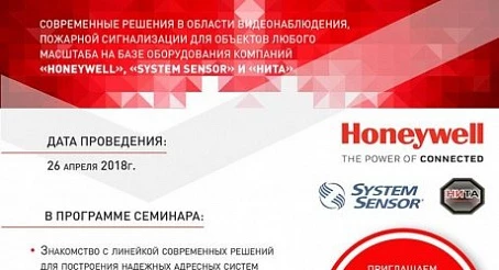 Приглашаем посетить семинар «Современные решения в области видеонаблюдения, пожарной сигнализации для объектов любого масштаба на базе оборудования компаний «HONEYWELL», «SYSTEM SENSOR» и «НИТА»