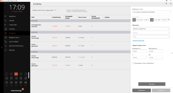 Возможность отслеживания тревожных событий