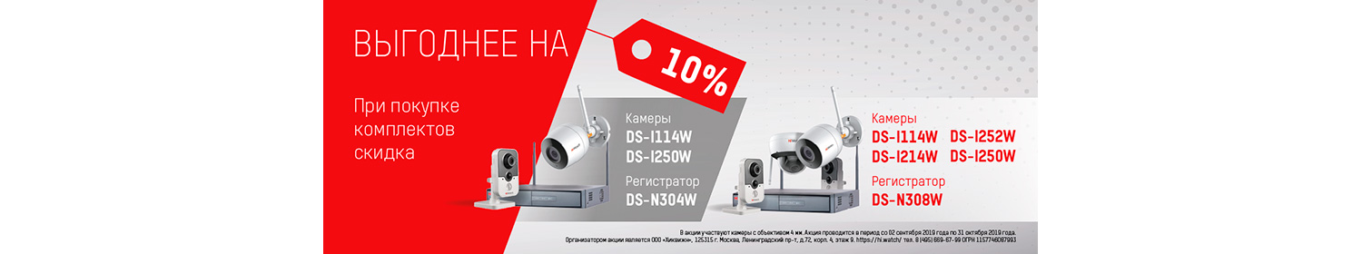2.3. Количество моделей камер DS-I114W(4mm), DS-I250W(4mm), DS-I214W (4mm), DS-I252W(4mm), регистраторов моделей DS-N304W, DS-N308W по настоящей акции ограниченно. Организатор акции оставляет за собой право изменить тип, модель выдаваемых камер и регистраторов, о чем вносятся изменения в соответствующие правила. Оповещение об изменении производится в порядке, установленном в п. 2.4. настоящих Правил.